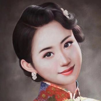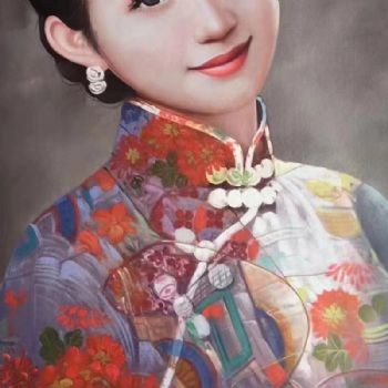 • 民国风美女图纯手绘俏美女油画写实油画旗袍美女油画