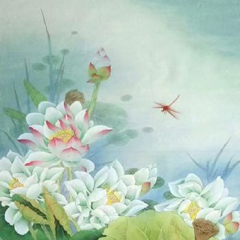 • 适合玄关大厅的风景油画荷花花卉工笔画