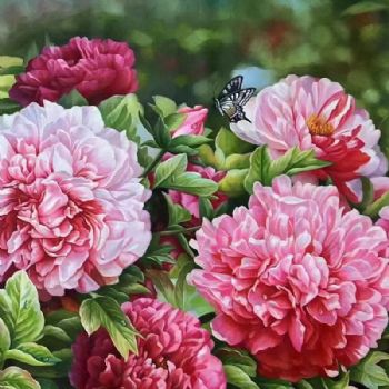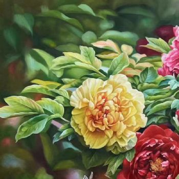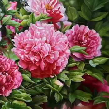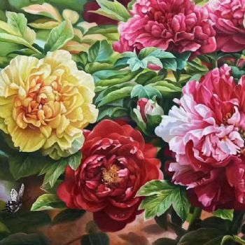 • 适合客厅大厅酒店背景墙的花卉油画牡丹图