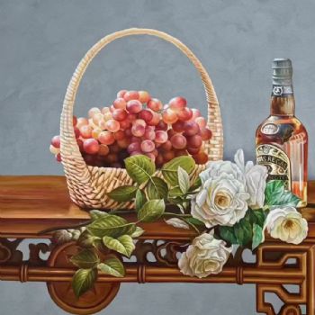 首页 --> 艺术商城 --> 油画静物 --> 葡萄静物写实油画 --> 字画美官方旗舰店 --> 静物写实油画纯手绘中式台案上的水果葡萄花卉油画实木画框