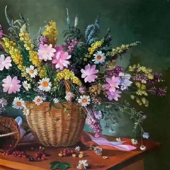 • 精品写实花卉油画一筐各式花花草草美丽风景油画实木画框