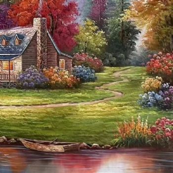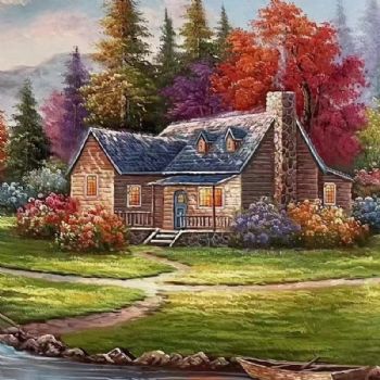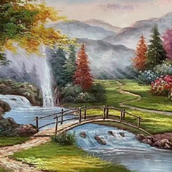 • 小桥流水石头房子托马斯风景油画纯手绘欧式风景油画