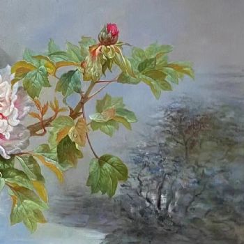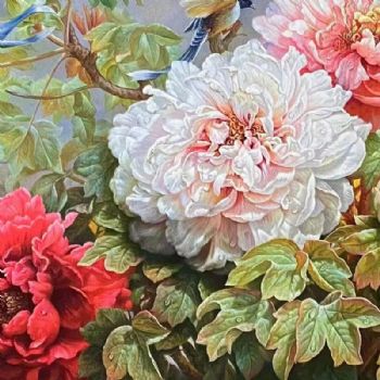 • 适合客厅大厅的精品写实油画牡丹画