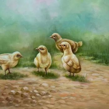 首页 --> 艺术商城 --> 油画花卉 --> 荔枝 --> 字画美官方旗舰店 --> 励志成长新中式纯手绘油画荔枝与小鸡图动物油画实木画框