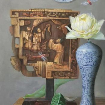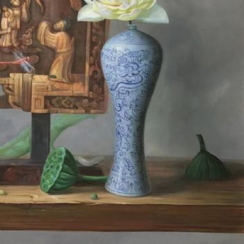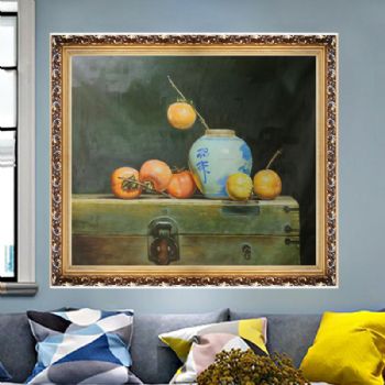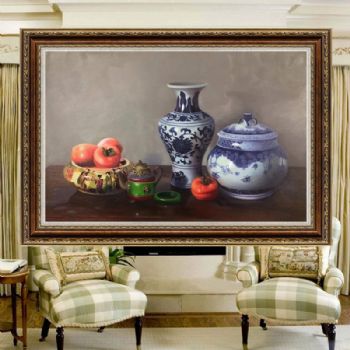 • 寓意平安幸福静物超写实油画新中式青花瓷写实油画纯手绘油画