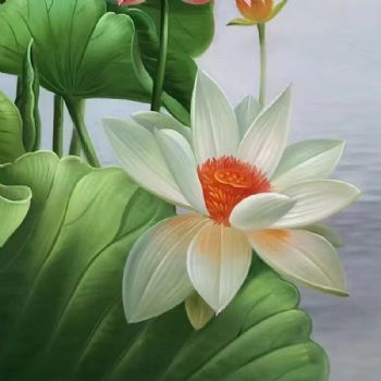 • 手绘花卉油画荷花池塘风景油画玄关油画
