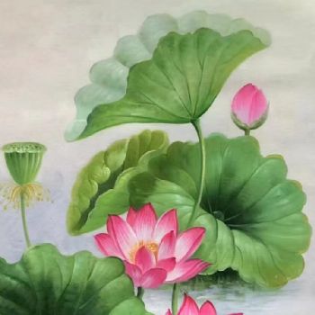 家大业大花卉油画荷花图