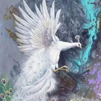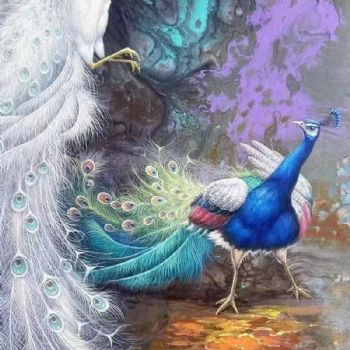• 适合玄关的品质手绘动物油画孔雀图