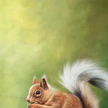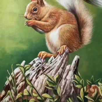 • 精品动物写实油画纯手绘小松鼠动物油画实木画框