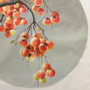 • 圆形写实油画纯手绘油画柿子图事事如意铝合金外框