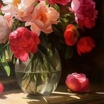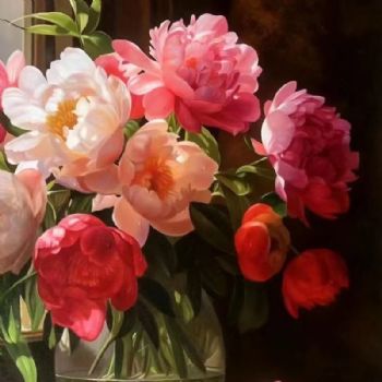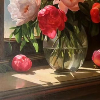 • 窗前的花卉油画作品欧式古典精品纯手绘花卉油画