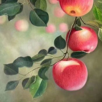 • 红红火火平平安安水果静物写实油画纯手绘苹果图