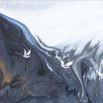 • 禅意现代茶室纯手绘油画一行白鹭飞天油画原创油画