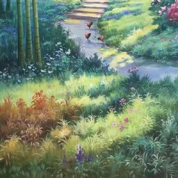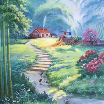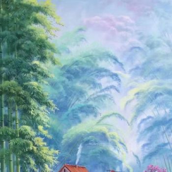 • 林间小屋竹子林风景油画新中式山水风景油画