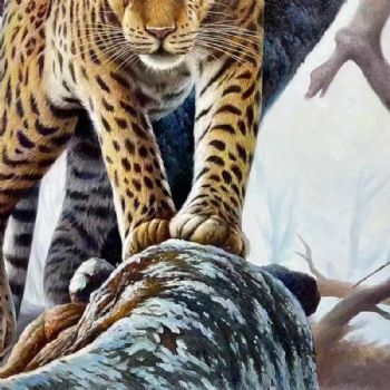 • 动物写实精品纯手绘油画金钱豹豹子图实木画框