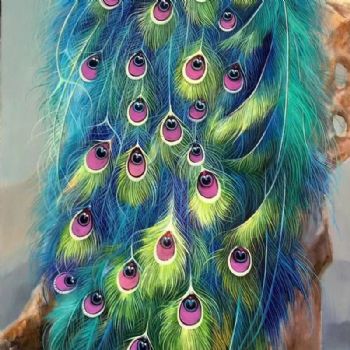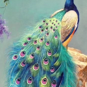 纯手绘精品写实动物油画孔雀油画