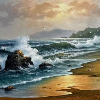 • 适合餐厅茶室的海浪风景油画