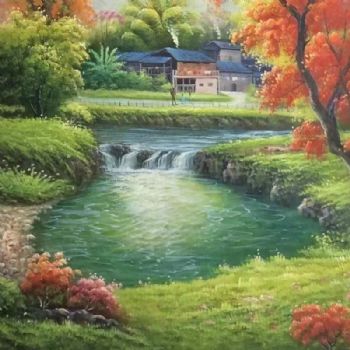 • 青山绿水山水风景油画
