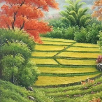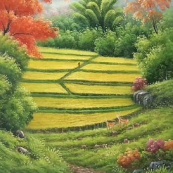 • 丰收的季节山水风景油画纯手绘玄关风景油画