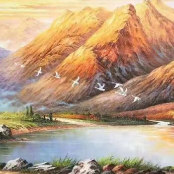 • 一行白鹭金山山水风景油画欧式金山纯手绘风景油画