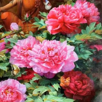 • 适合新中式玄关客厅的花卉油画牡丹图