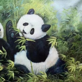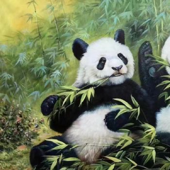 • 团团圆圆熊猫手绘动物油画