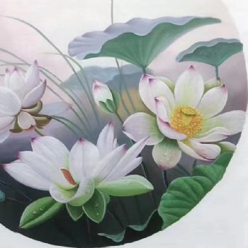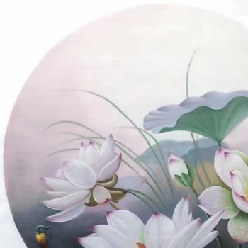 • 圆形铝合金风景油画荷花池风景油画
