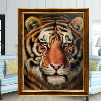 • 动物写实精品纯手绘油画老虎图雄霸一方王者风范实木画框