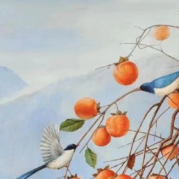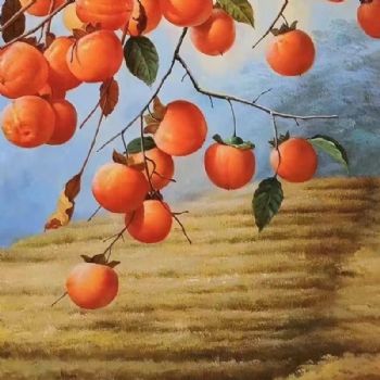 • 丰收的梯田上的柿子图纯手绘喜上枝头世世如意新中式玄关油画