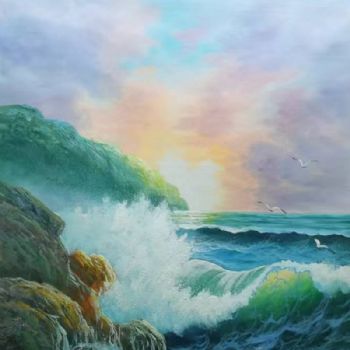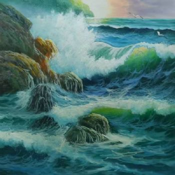 • 纯手绘油画海浪画