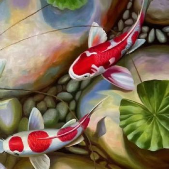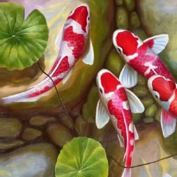 • 适合客厅餐厅的锦鲤油画