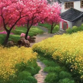 首页 --> 艺术商城 --> 油画风景画 --> 田园风光风景油画 --> 字画美官方旗舰店 --> 纯手绘风景油画花海春天桃花开玄关装饰油画