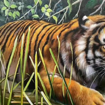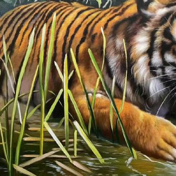 首页 --> 艺术商城 --> 动物油画 --> 老虎 --> 字画美官方旗舰店 --> 动物写实油画老虎图纯手绘动物油画办公室挂画