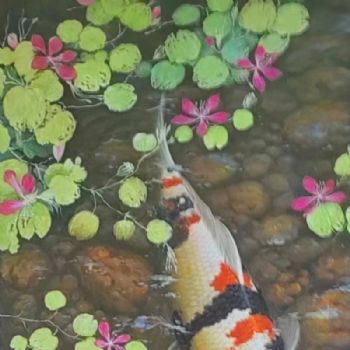 首页 --> 艺术商城 --> 动物油画 --> 九鱼图 --> 字画美官方旗舰店 --> 新中式年年有余锦鲤图纯手绘玄关荷花风景油画