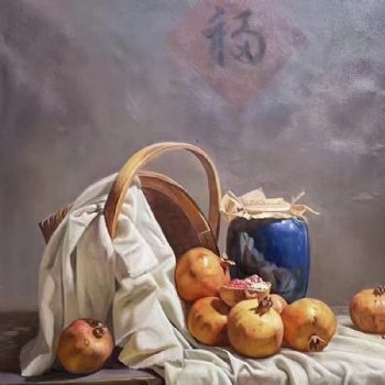 新中式柿子油画