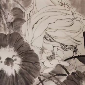 • 四尺精品人物国画纯手绘水墨人物画荷花下美女国画