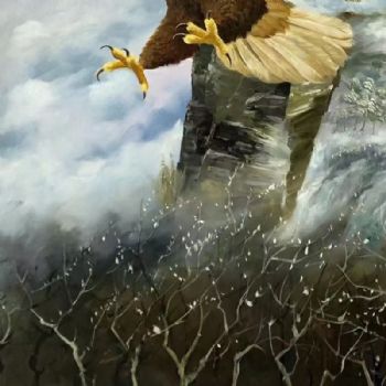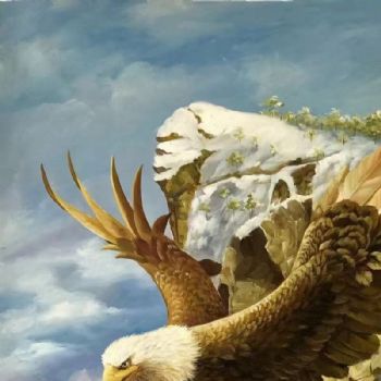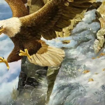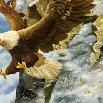 • 朝鲜油画纯手纯动物油画雄鹰万里鹏程图