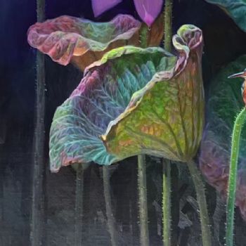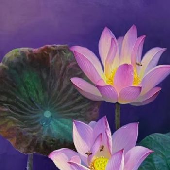 • 和和美美和气生财纯手绘荷花写实风景油画精品花卉油画
