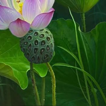 • 精品荷花池风景油画纯手绘写实花卉油画