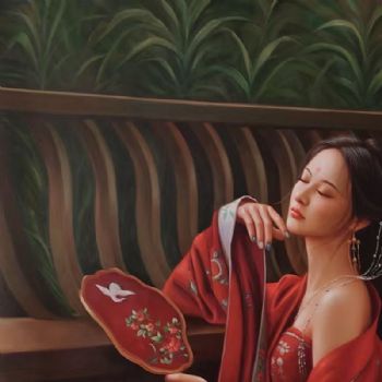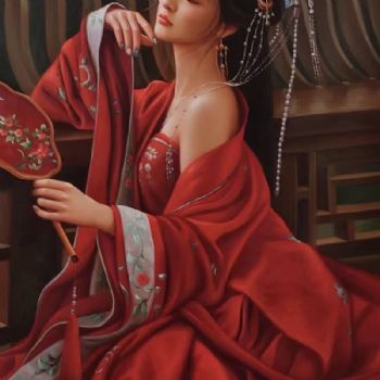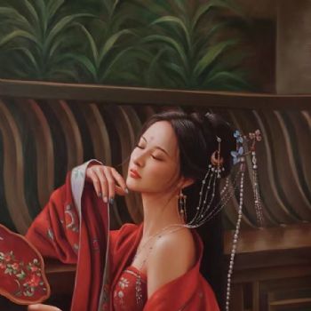 首页 --> 艺术商城 --> 油画人物 --> 中式人物 --> 字画美官方旗舰店 --> 手执扇子美女图写实纯手绘人物油画中式油画