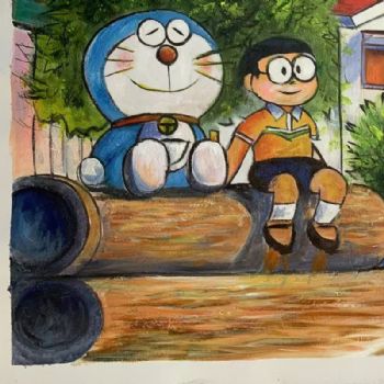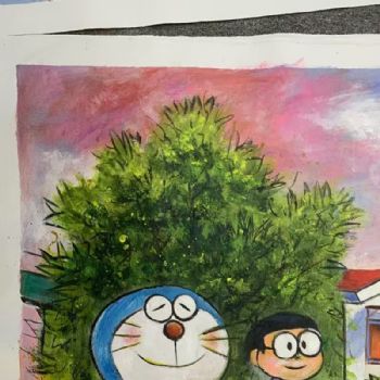 • 多拉A梦机器猫卡通油画纯手绘儿童油画