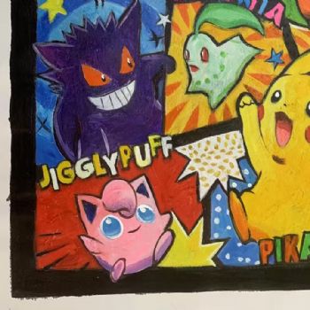 • 皮卡丘动漫儿童卡通油画纯手绘厚肌理油画