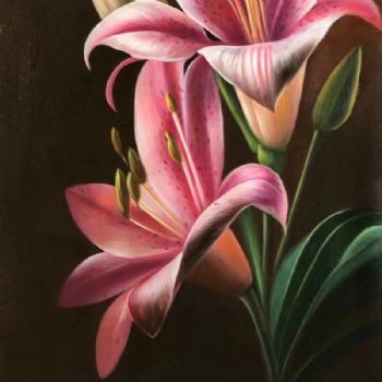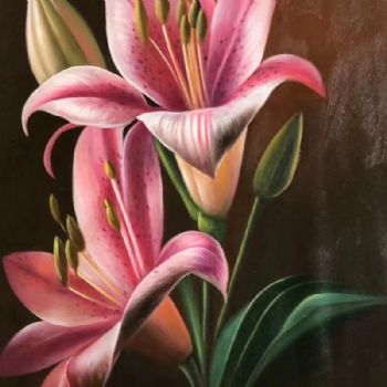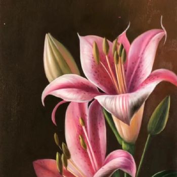 首页 --> 艺术商城 --> 油画花卉 --> 百合花 --> 字画美官方旗舰店 --> 粉红色的百合花百年好合写实手绘花卉油画