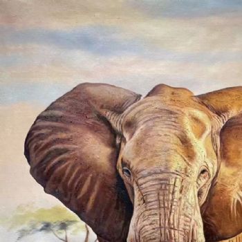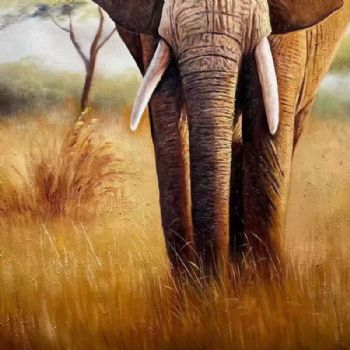 • 吉祥吉象如意纯手绘动物写实油画大象玄关办公室挂画