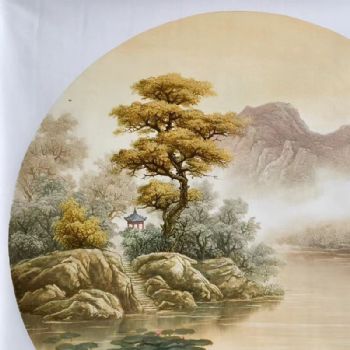 首页 --> 艺术商城 --> 油画风景画 --> 原创风景油画 --> 字画美官方旗舰店 --> 圆形山水风景油画纯手绘刀画作品风景优雅
