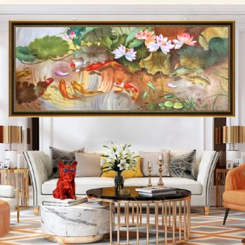 • 适合老板总裁办公室书房金龙鱼油画作品