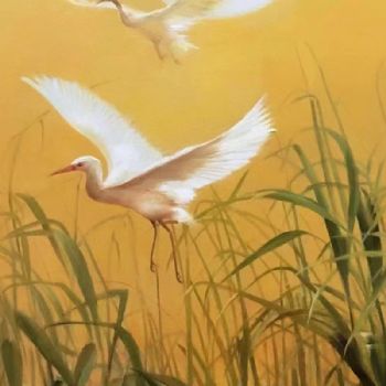首页 --> 艺术商城 --> 油画风景画 --> 原创风景油画 --> 字画美官方旗舰店 --> 芦苇白鹤风景油画纯手绘油画新中式玄关精品油画