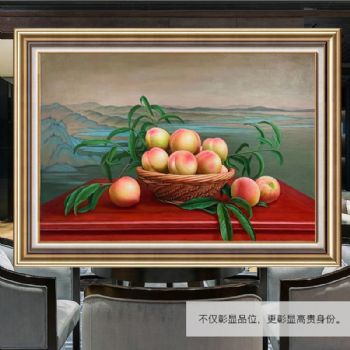 • 中式水蜜桃桃子水果写实油画寿桃静物油画纯手绘油画实木画框