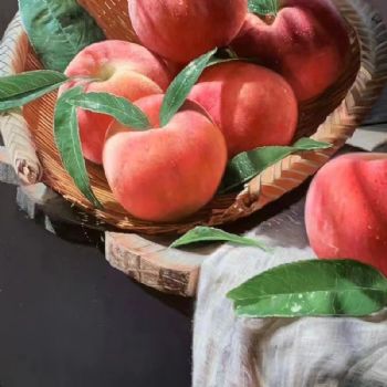 写实桃子静物油画
