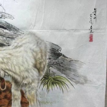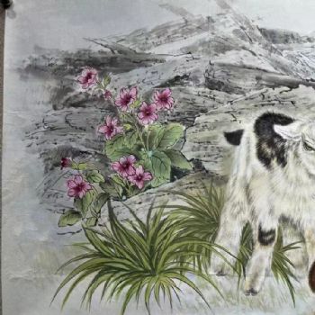 首页 --> 艺术商城 --> 国画动物画 --> --> 字画美官方旗舰店 --> 朝鲜国画动物画三羊开泰山羊图纯手绘水墨画实木画框